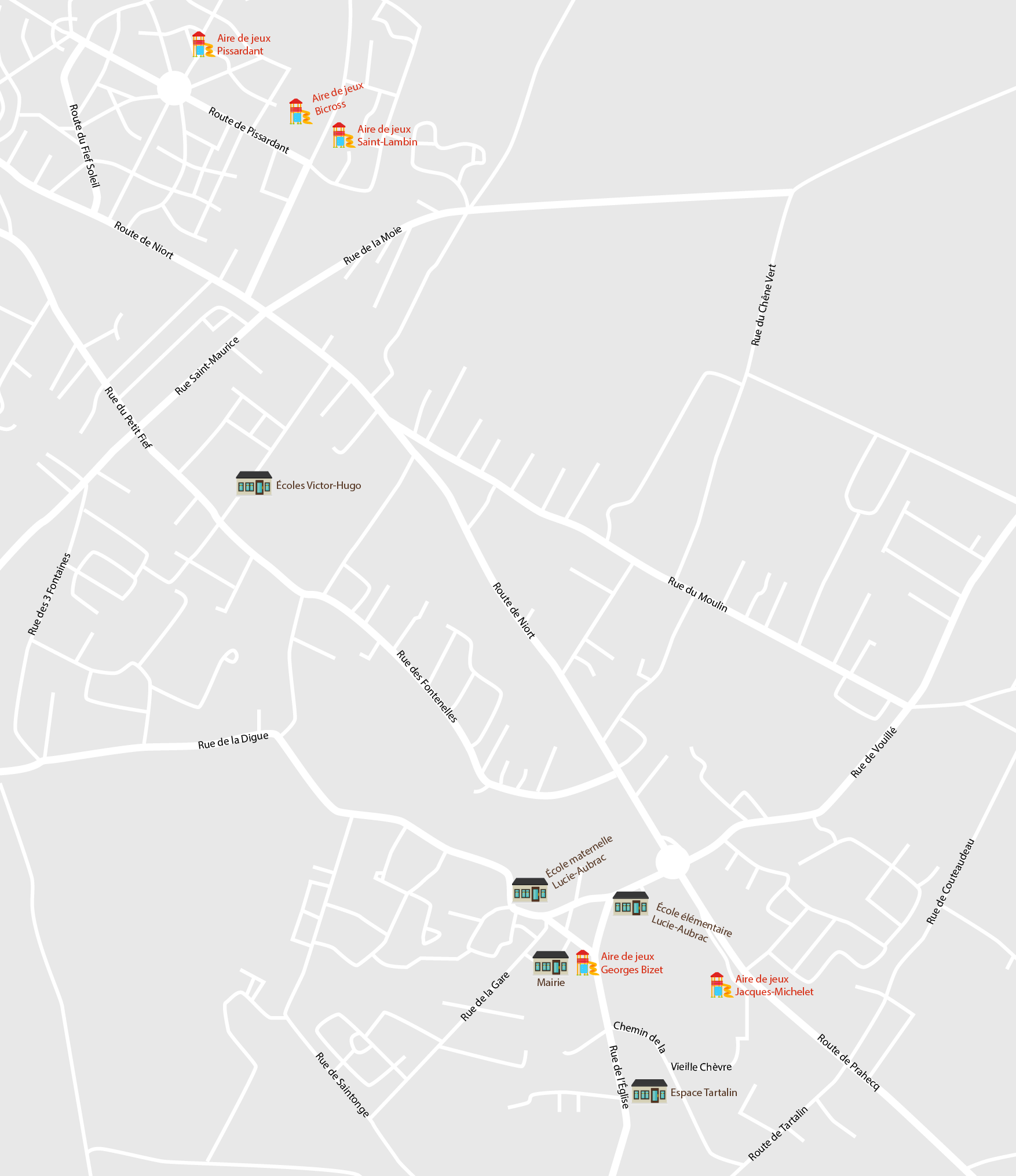 Afin d’améliorer le cadre de vie des familles, la commune met à disposition plusieurs aires de jeux pour vos enfants de 2 à 10 ans, en accès libre. À ce jour, la commune d’Aiffres compte 5 aires de jeux en accès libre et gratuit dans plusieurs endroits de la ville.